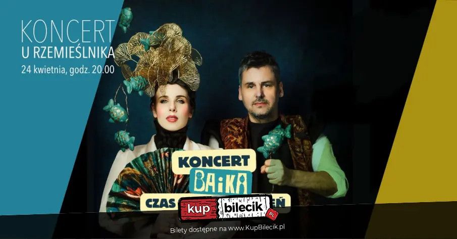 bilety: BAiKA "Czas końca złudzeń" Duet BAiKA (Banach i Kafi) zaprasza na wiosenną trasę "Czas końca złudzeń", promującą najnowszy album o tym samym tytule. Podczas wydarzenia usłyszymy premierowe utwory z nowego albumu, ale nie zabraknie też dobrze znanych i lubianych kompozycji z wcześniejszych płyt. BAiKA to energia, charyzma i autentyczność - połączenie gitarowych riffów Piotra Banacha z mocnym, wyrazistym głosem Kafi sprawia, że każdy ich koncert zostaje w pamięci na długo. To muzyka, która trafia do serca - bez względu na to, czy znasz ich twórczość, czy usłyszysz ją po raz pierwszy. Bilety do nabycia na: KupBilecik.plBAiKA artyści: Piotr Banach, Katarzyna FigajPiotr Banach to założyciel i pierwszy kompozytor zespołu Hey, producent i współkompozytor debiutanckiej solowej płyty Katarzyny Nosowskiej Puk, puk, założyciel zespołu Indios Bravos, autor solowej płyty Wu-Wei z udziałem Abradab, Alicji Janosz, Gutka i Tomka Lipińskiego. Katarzyna Figaj - śpiew, instrumenty klawiszowe - swój artystyczny pseudonim zbudowała w oparciu o zbitkę pierwszych sylab imienia nazwiska, stąd Kafi. Pochodząca z Legnicy wokalistka związała się z zespołem StandBy, w którym śpiewała i pisała teksty. Szerszej publiczności dała się poznać występując u boku Katarzyny Nosowskiej podczas jubileuszowej trasy zespołu Hey - Fayrant Tour. Bilety do nabycia na: KupBilecik.pl |